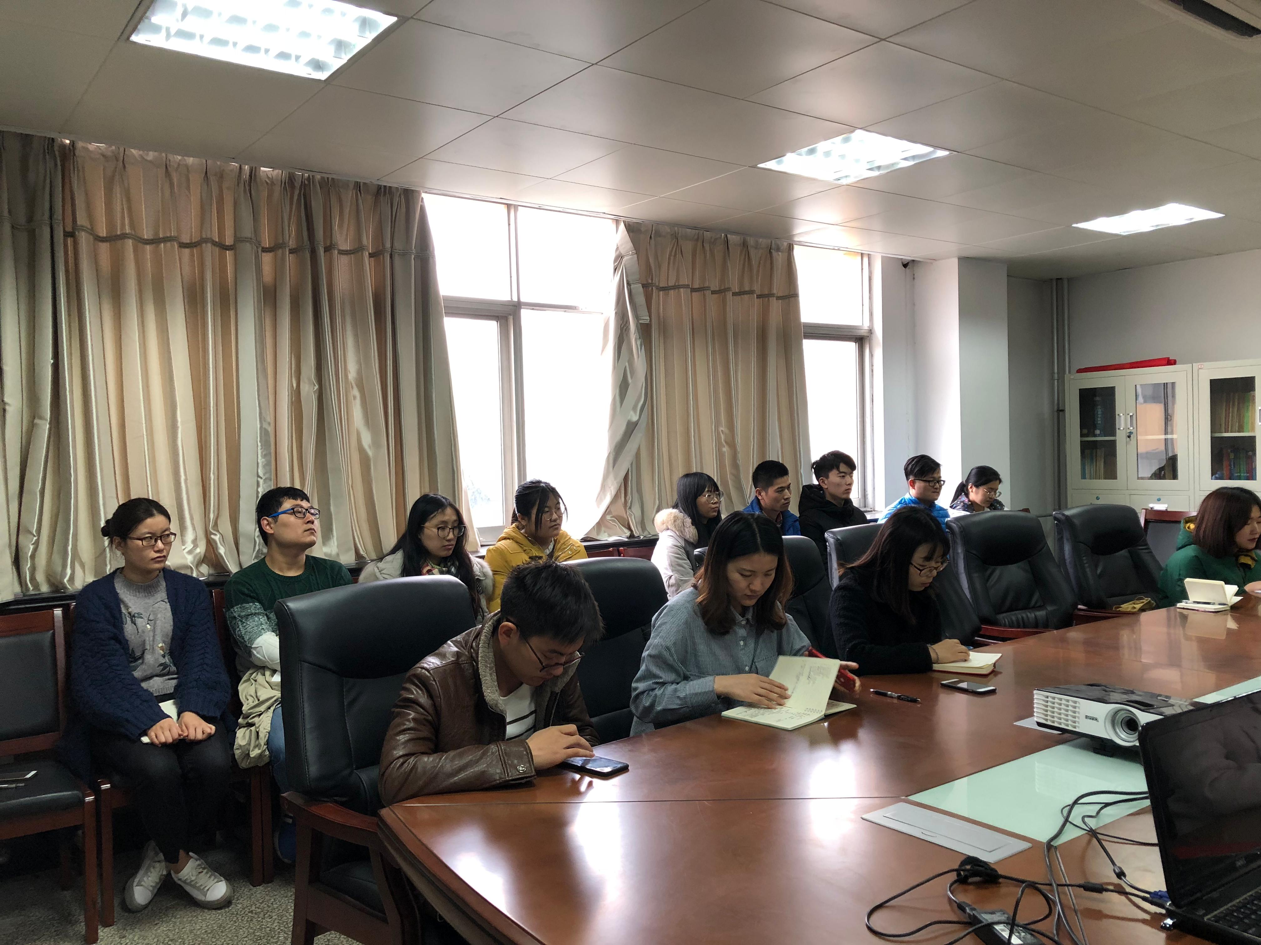 首先,杨洪霞带领全体成员学习并解读了学校第三次党代会的重要意义,传达了会议精神,并对下一步如何将8868体育app 学生党支部工作与党代会精神更好地结合起来进行了部署。以习近平新时代中国特色社会主义思想为指导,全面贯彻落实党的十九大精神,勇担使命,奋发图强,加快进入国家“双一流”建设行列,谱写新时代高水平大学建设新篇章是本次会议的学习主题,参会人员纷纷表示要认真学习领会党代会精神,将党代会精神作为自己学习工作的重要指引。