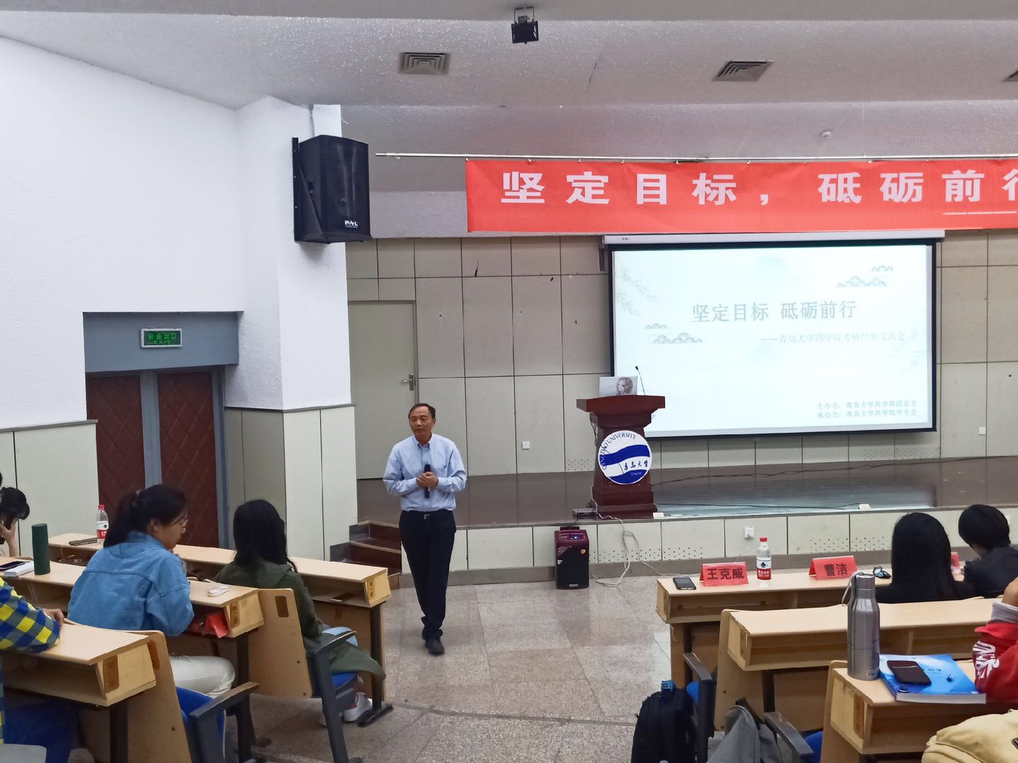考研整体情况,分享了他的学术研究体会和对考研的认识,勉励同学们积极投身医药行业创新发展,以实际行动报效祖国,勤奋学习,追求卓越,珍惜现在良好的学习条件,保持身心健康,人人成才成功。