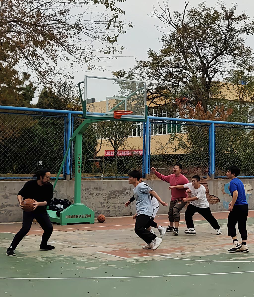 多名老师及研三学生组成的联队对抗研一研二联队,同学们对本次活动热情高涨,积极参与。经过上半场的切磋,老师与研三联队以26:17暂时处于领先地位。下半场研一研二联队奋起直追、越战越勇使比赛进入白热化阶段,但老师与研三联队发挥稳定、配合默契,最终以53:36大比分领先的局势结束了整场比赛。