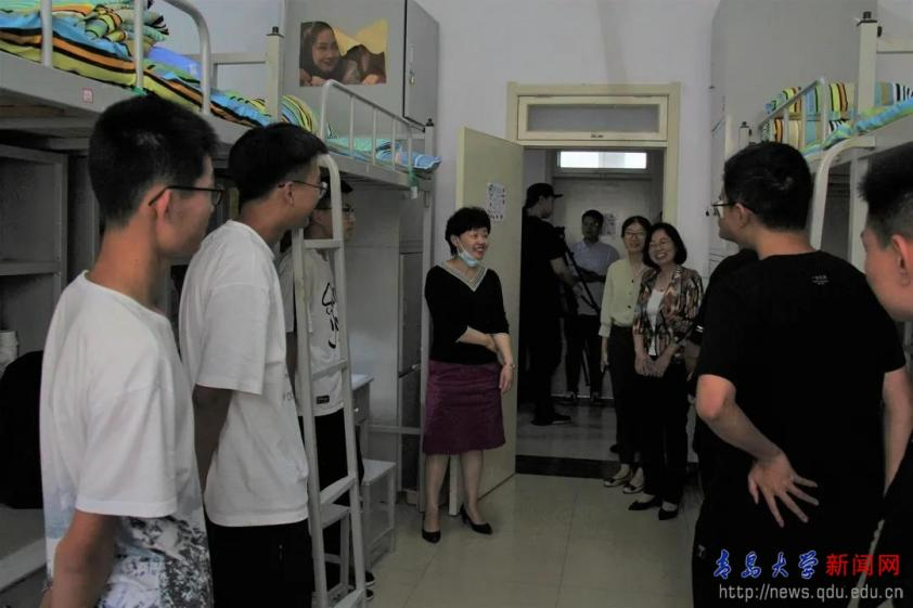 姜宏副校长到宿舍后,与同学们亲切交谈,语重心长提醒嘱咐新同学要重视学习,学会生活,善于交流。她说,学习仍是大学生活的重点,同学们一定要珍惜这宝贵的学习时光,学习上继续抓紧,打好基础,将来的发展才会更有空间;要学会生活,学习不是生活的全部,大学生要学会生活,好好生活,大家来自各个省份,要互相爱护,互相照顾,山东尤其青岛的同学要尽好地主之谊;要学会分享和交流,善于博采众长,善于消化吸收,希望同学们在未来的学习中顺利愉快,也欢迎同学们直接找她交流。