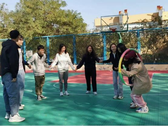 项目考验团队协作水平,需小组成员牵手传递呼啦圈。赛前各小组积极预热,因此在比赛过程中,均以较快的速度完成。