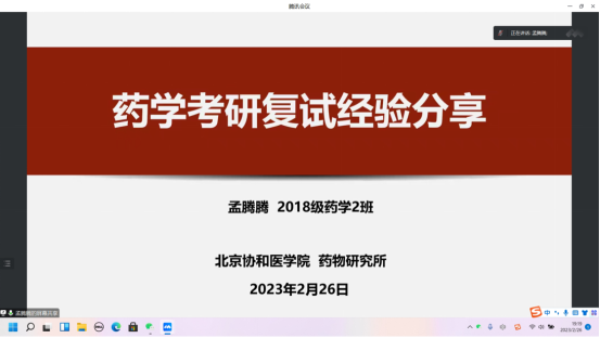 药物研究所的孟腾腾、中国药科大学的孙渝淞、贵州医科大学的肖胜佳分享了他们的复试准备经验。