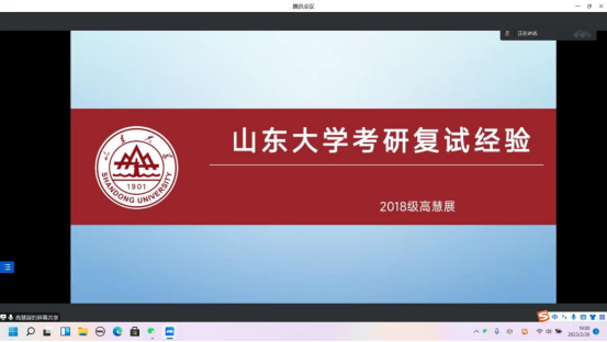 孟腾腾以个人经历表明考研复试需要稳住心态,抓住机会才能奔向光明未来。她提醒大家要尽早着手准备,能够以良好的心态面对临时通知,提升应变能力;模拟面试时要语速快慢适中有逻辑。