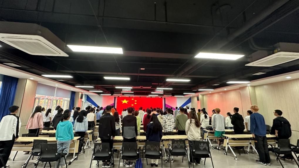 第八届学生会成立大会开始,全体与会成员肃立,奏唱国歌。