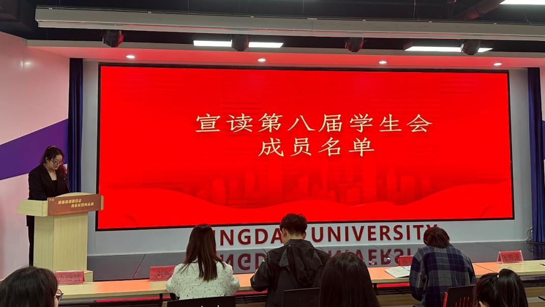 第八届学生会成立大会于青岛大学浮山校区大学生科创文化中心二楼多功能厅顺利召开。本次大会由学生会副主席李晓敏主持,学生会指导老师仇启荣及8868体育app