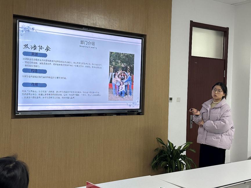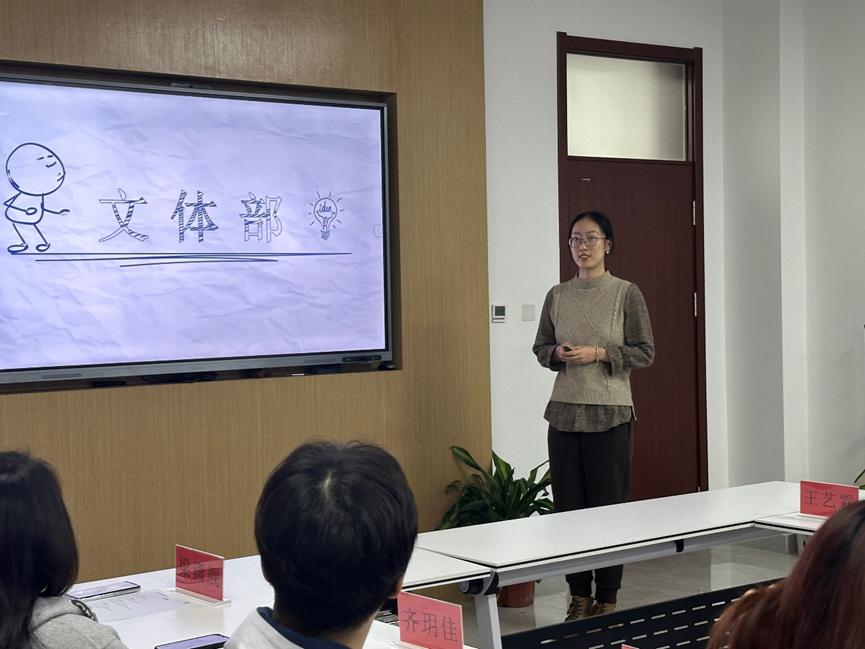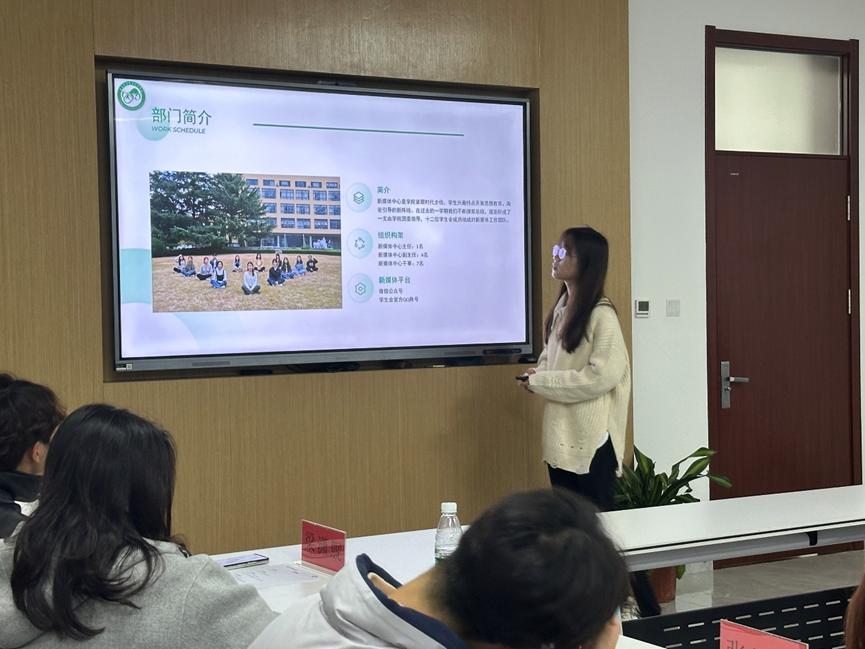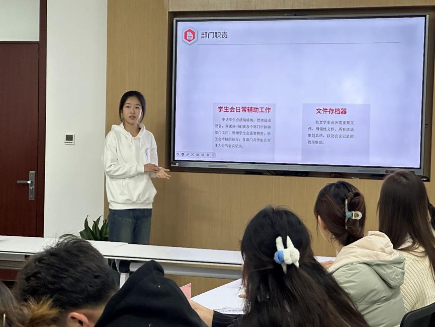学生会各部门代表从其部门人员构成、主要职能、活动交流分享等方面入手进行详细介绍。