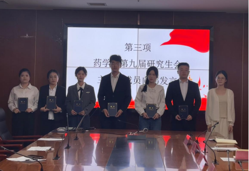 第九届研究生会主席团代表向伟介绍本届研究生会成员的选拔情况并宣读第九届研究生会各部门负责人及成员名单,由辅导员仇启荣为研究生会成员颁发聘书。