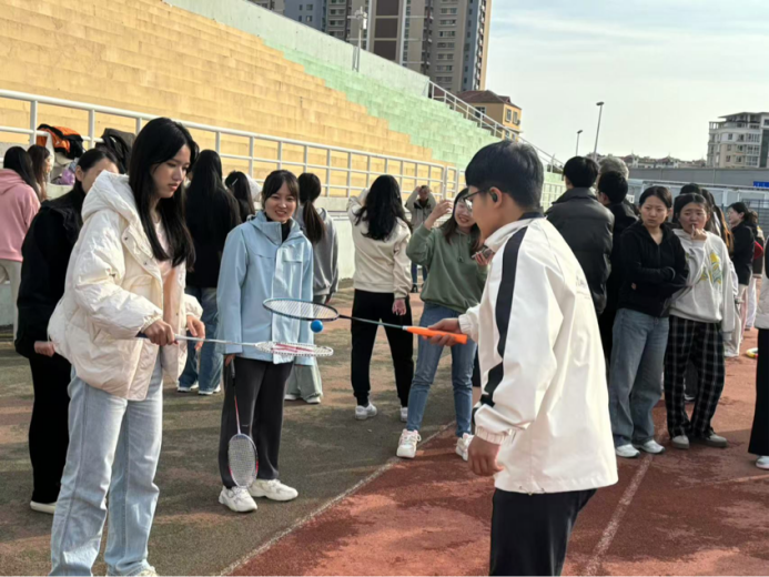 该项目考验同学们的平衡技巧,需要同学们手持羽毛球拍,在确保乒乓球不落地的前提下,迅速将球传递给队伍中的其他成员,用时最短的队伍将取得胜利。