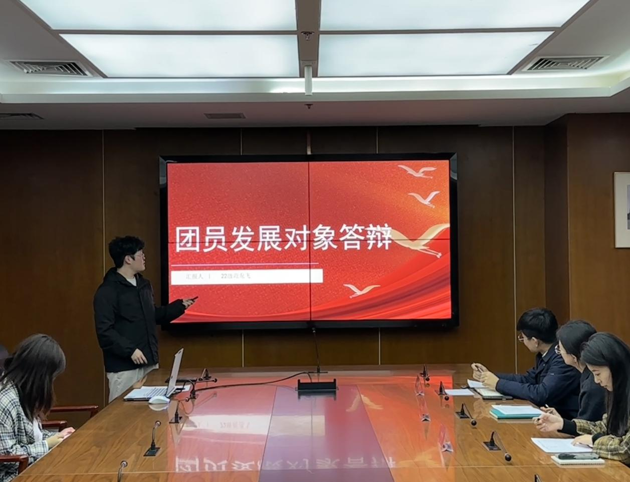 团委于4月2日组织召开2025年春季学期团员发展对象答辩会。学工办副主任仇启荣、团委负责人杨浩、研究生会主席向伟以及6名入团积极分子参加答辩会,会议由杨浩主持。