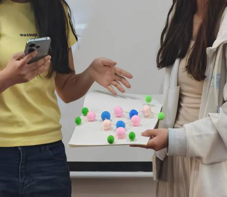 展示环节,各组派代表对本组搭建的药物分子模型进行展示,通过对分子模型的讲解进一步增强对药物分子结构的认知,加深同学们对药物分子结构的理解。