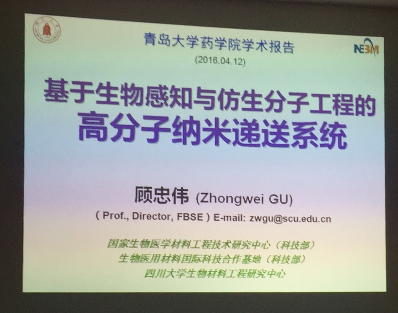 国家生物医学材料工程技术研究中心主任、国家“973”计划生物材料领域首席科学家顾忠伟教授应我校药剂学科邀请来我校8868体育app
