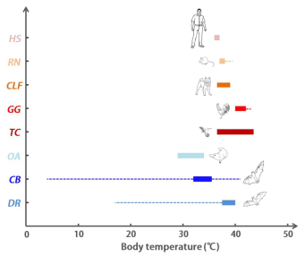 在这项研究中,我们首次描述了果蝠TRPV1通道与人源TRPV1通道相比其pore turret区域具有明显的序列多样性,并且果蝠的TRPV1热感受器具有较低的热激活阈值。因为果蝠特殊的生理结构,导致果蝠的体温波动范围较大,通道在果蝠休息时处于闭合状态,从而在稳定机体热平衡中起着重要的作用。从这个意义上说,蝙蝠可能是了解调节机体热内稳态过程中TRPV1所发挥的生理功能的良好生物模型,使我们能够从进化的角度来解释TRPV1通道的物种差异性以及进化的分子机制。