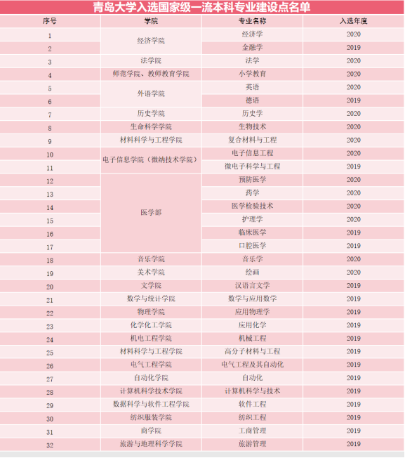青岛大学入选国家级一流本科专业建设点名单