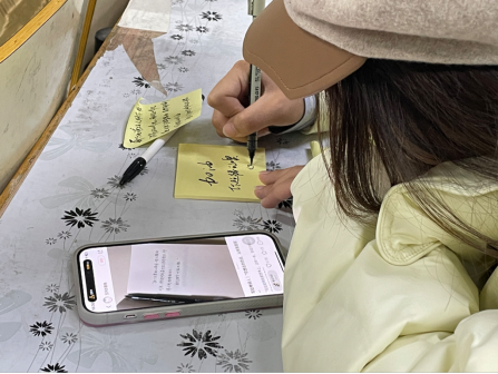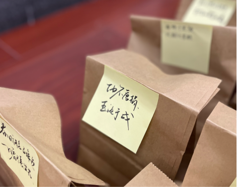 同学们把考研祝福贴在“考研暖心包”上,一句句温暖诚挚的话语,不仅承载着对考研学子美好祝愿,也展现了8868体育app