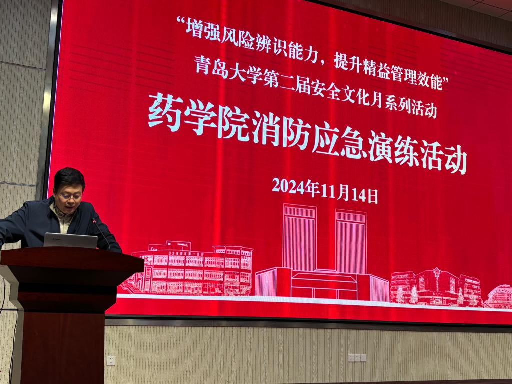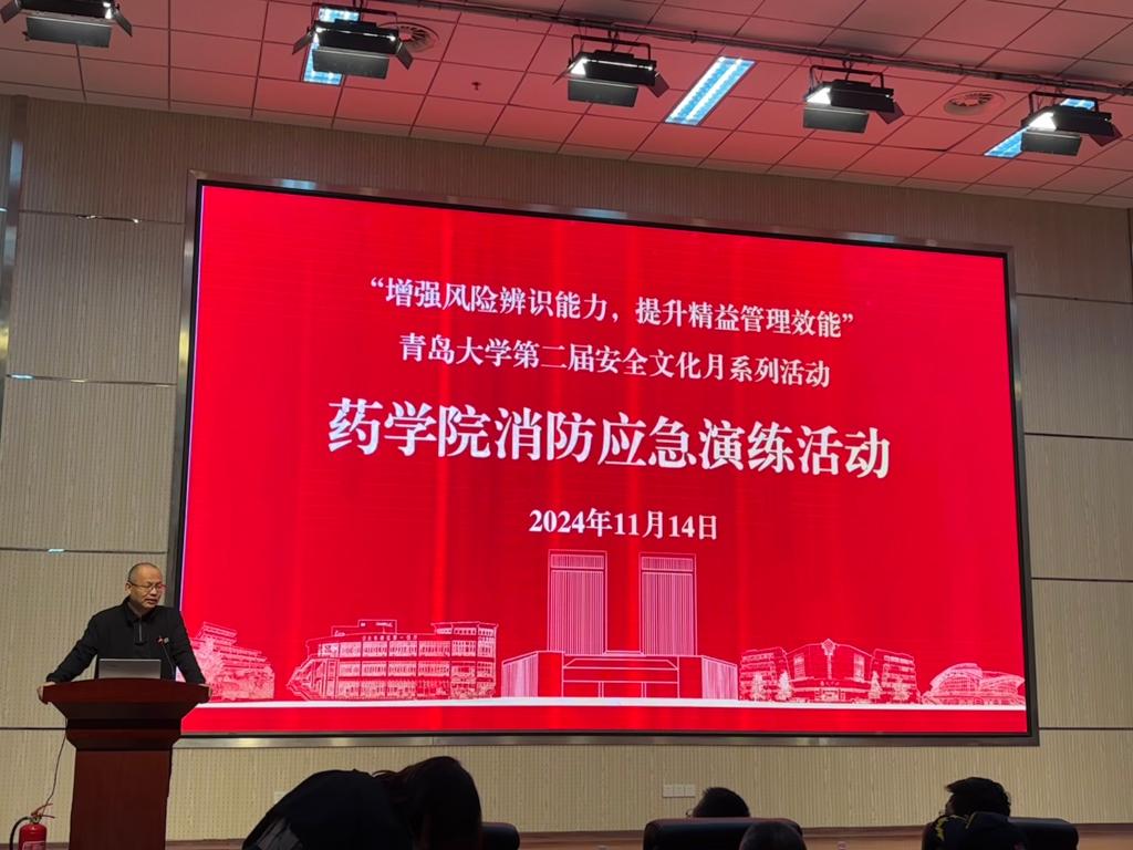 于11月14日上午在浩园医学教育综合楼学术报告厅举行了消防知识培训讲座并进行消防应急演练。本次活动作为青岛大学第二届实验室安全文化月首场活动,得到了学校资产与实验室管理处及安全管理处的大力支持,特别邀请了崂山区消防救援局应急救援大队给予专业培训和指导,安全管理处配置了相关专业人员和灭火演练器材。资产与实验室管理处处长周伟、安全管理处处长王洪运、8868体育app