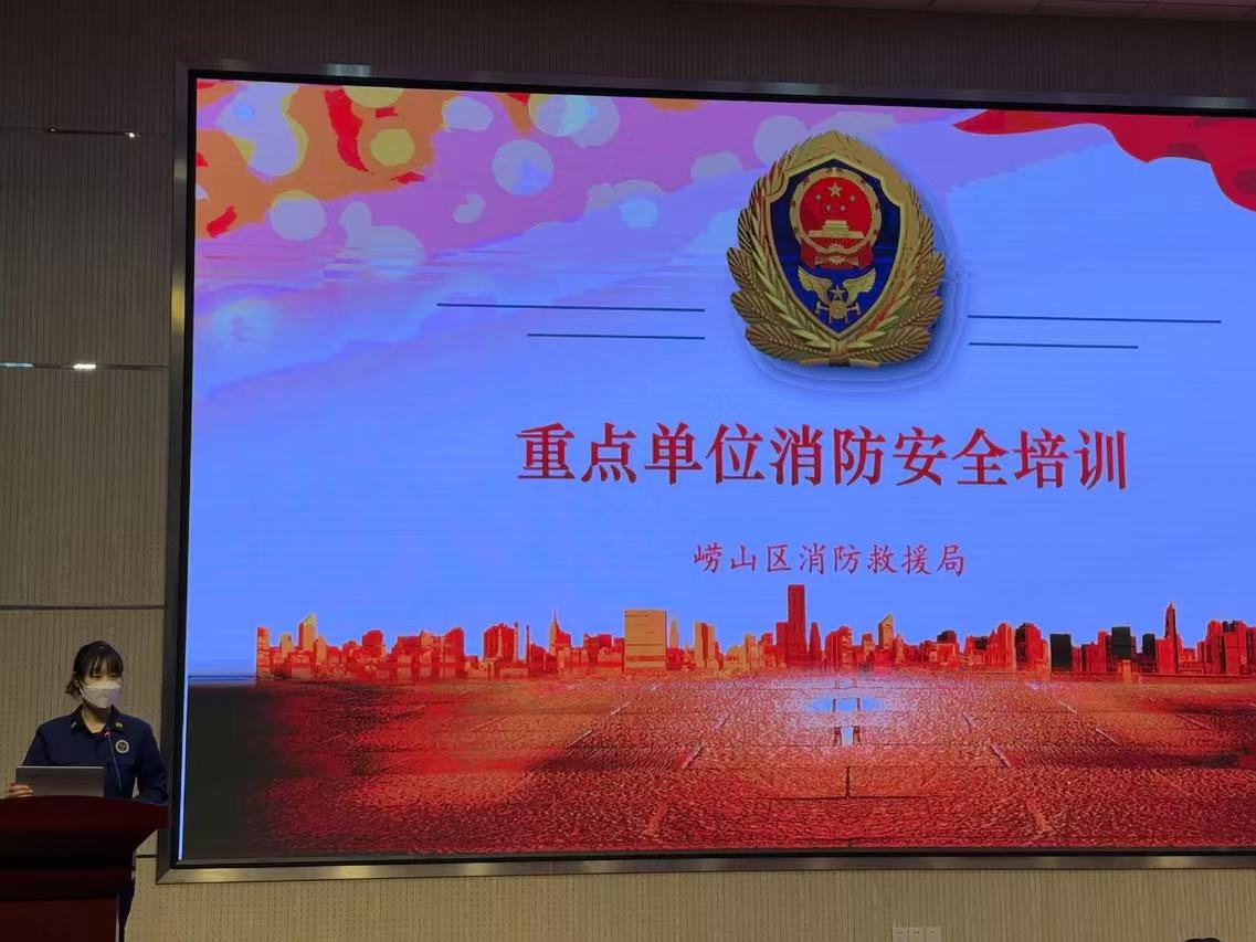 周伟、王洪运及孙勇分别做了动员讲话和发言。崂山区消防救援局应急救援大队刘小楠主任详细介绍了消防工作方针和原则,每个人应该具备的消防安全的四个能力,专门指出高校实验室消防安全特点和总体要求,同时为广大师生普及了消防安全小知识包括消防标志、火灾报警、火灾扑救、人员疏散、紧急救援等多个环节。最后演示灭火器及水带的使用方法。上午10时,防空警报拉响,烟幕弹冒气白烟,正式开始消防演练,模拟了发生火灾时的紧急情况,全体师生在消防人员的疏导下,迅速按照应急预案进行逃生训练。演练过程中,消防员为大家详细讲解了灭火器的使用方法,并分组让师生们实际进行了灭火器灭火训练,取得了良好效果。