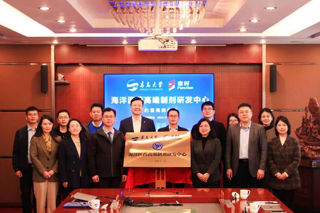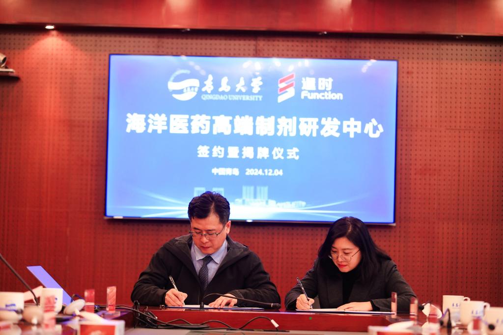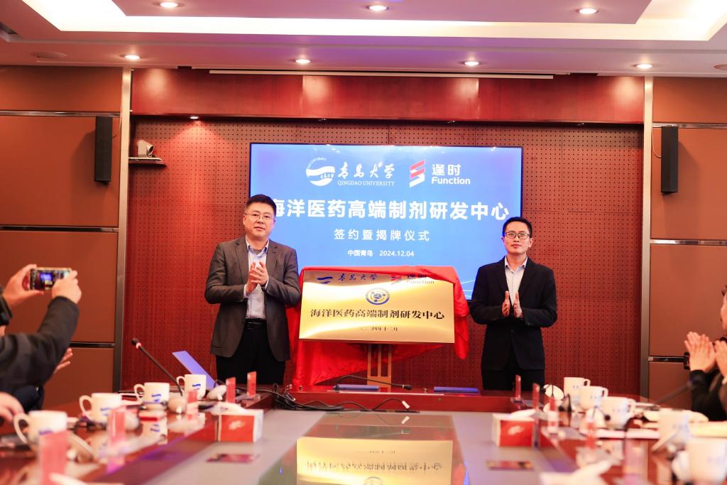 活动现场,牛海涛、刘晶代表双方签署“共建青岛大学逢时科技海洋医药高端制剂研发中心”合作协议,孙勇、邓学鹏共同为“青岛大学—逢时科技海洋医药高端制剂研发中心”揭牌。