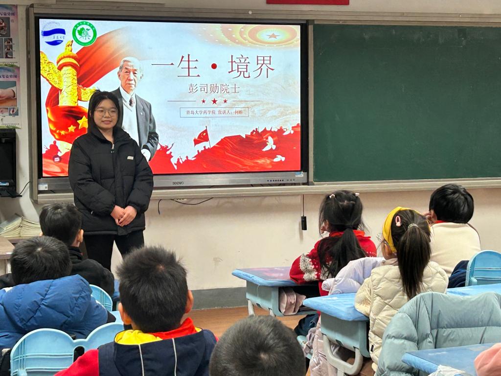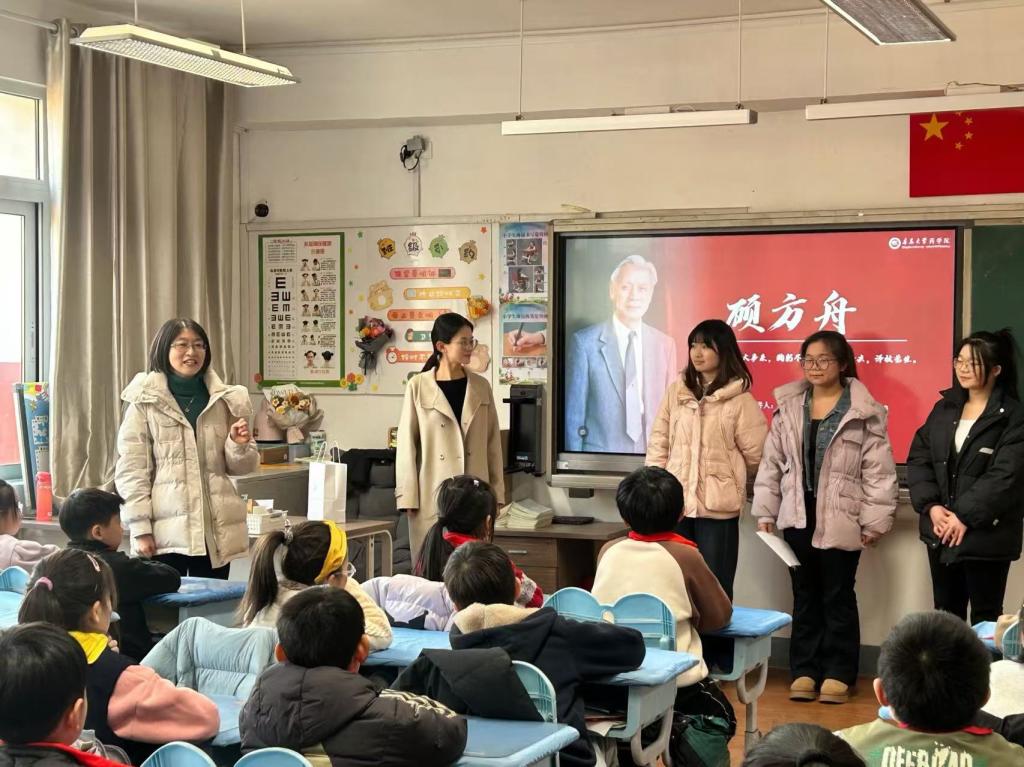 党委副书记雷舒涵,辅导员仇启荣、杨浩,药学青年先锋青年宣讲团成员周婉婷、张祎一、何盼一行赴大学路小学,为小学生讲述医药行业杰出人物的先进事迹。