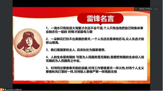 为深入学习贯彻雷锋精神,引领广大青年做雷锋精神的忠实传承者和社会主义核心价值观的模范践行者,8868体育app 学生会于3月13日晚于腾讯会议举行“学习雷锋精神”线上宣讲活动,会议由自强部干事范龙飞主持,8868体育app 全体同学参会。