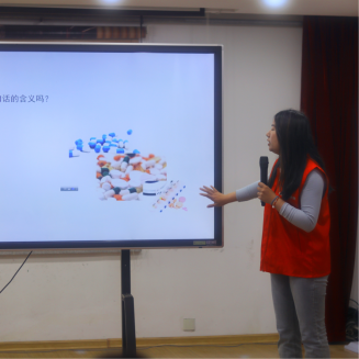 接着,刘格岑同学进行安全用药宣讲。她先从“是药三分毒”引入,说明安全用药的重要性,并讲解了处方药与非处方药的区别。而后,刘格岑向大家讲解如何查看药品的说明书,并向在场的老人说明配备小药箱的重要性。她还向大家科普了一些基本的急救知识,提升了大家的急救技能。