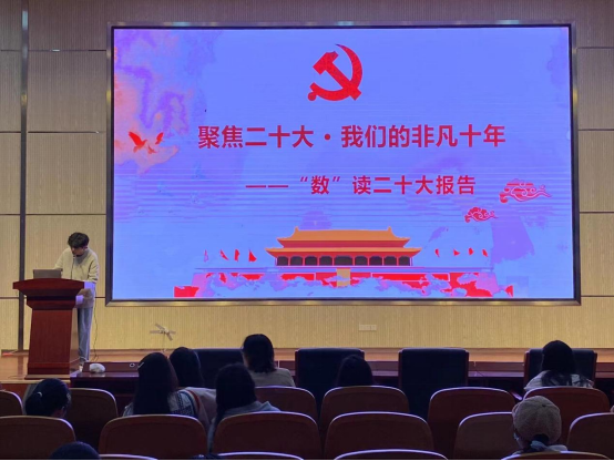4月16日晚,8868体育app 思政武装部在医学教育综合楼一楼学术报告厅组织了“数”读二十大报告会,二十大宣讲团成员石迎迎同学和曹晨曦同学从多方面为2020级、2021级、2022级全体本科生解读了二十大会议的指示和精神。