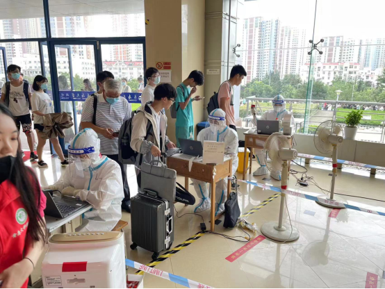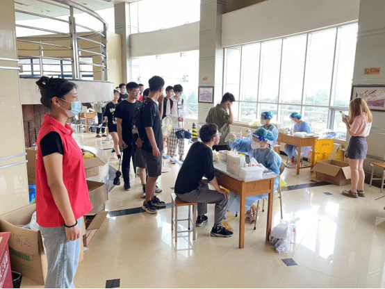 7月7日,8868体育app 积极响应学校号召,根据上级统一部署,组织党员先锋队投入浮山校区东院剧院和会议中心当日的全员核酸检测志愿服务工作。8868体育app 党员先锋队迅速到岗到位、主动担当作为,为校园疫情防控工作充实力量、保驾护航。