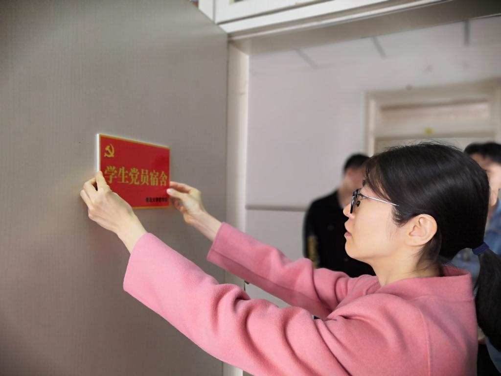 在全体学生党员中开展“党员宿舍挂牌”活动,党支部书记雷舒涵和部分学生党员代表参加此次活动。