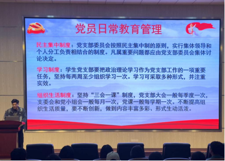 学生党支部的基本情况,包括各项规章制度、支部委员会的基本构成及其主要职责,以及主题党日活动的展示,让在场的同志们对支部有了更加全面和深入的了解。梁瑞国希望新生党员能够努力科研、勤奋工作,牢记党员身份,严格要求自己,在8868体育